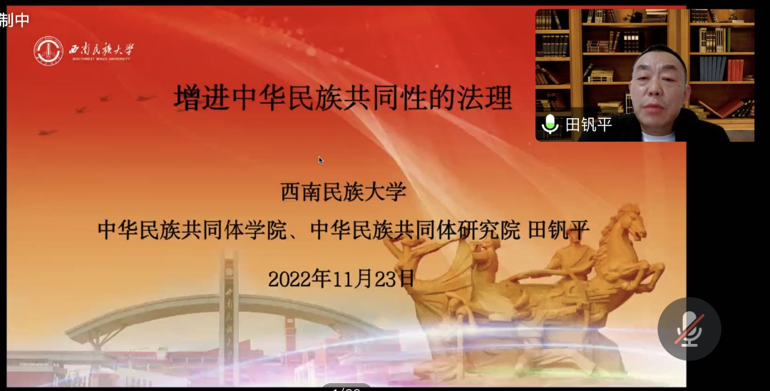 为深入学习二十大精神,增进铸牢中华民族共同体意识的理论认知和学理阐释,2022年11月23日,民族法党支部组织“二十大精神”系列讲座之《增进中华民族共同性的法理探析》。本次讲座特邀西南民族大学中华民族共同体皇冠体育投注副院长田钒平教授主讲,皇冠体育投注 副院长、民族宗教研究院院长宋海彬教授主持,民族法党支部全体教师及校内外广大师生一百余人参加。