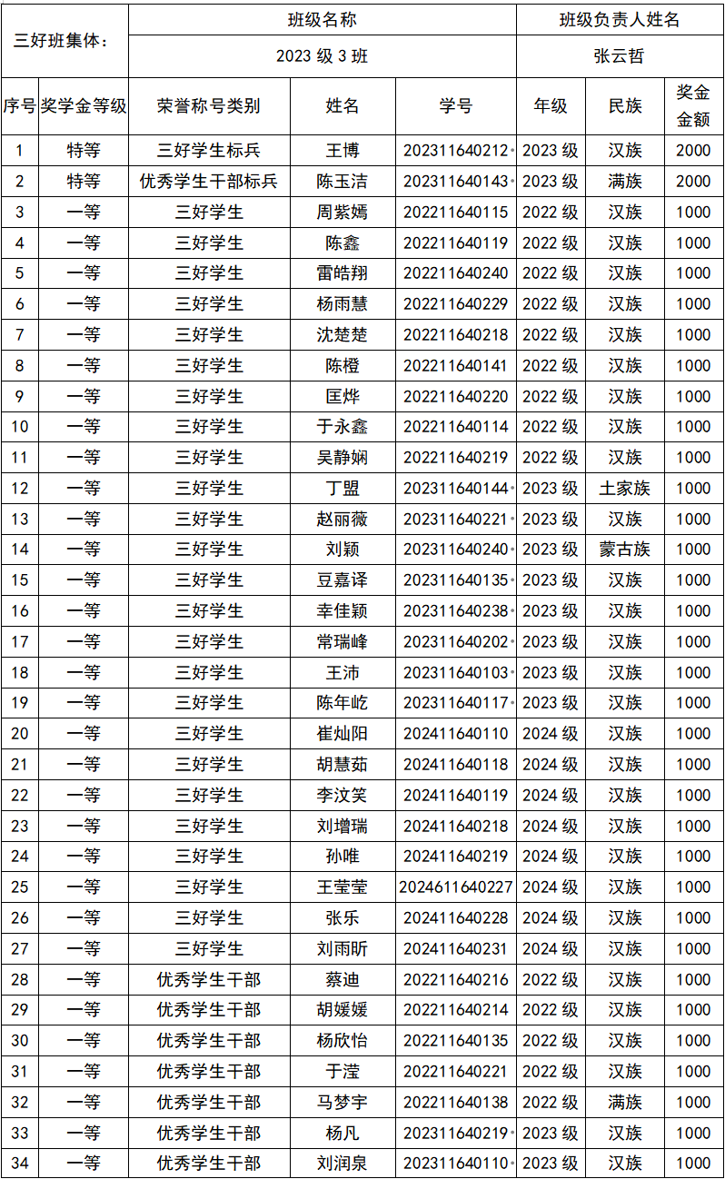 根据学校《关于开展2024-2025学年本科生奖学金及荣誉称号评选工作的通如》和《西北法大学本科生奖学金及荣誉称号评选办法》相关规定,经年级民主评议,皇冠体育投注党政联席会议研究通过,拟推荐以下同学为学生奖学金及荣誉称号候选人,公示期为2025年11月13日至17日,公示期内若有异议,请与各年级辅导员联系。