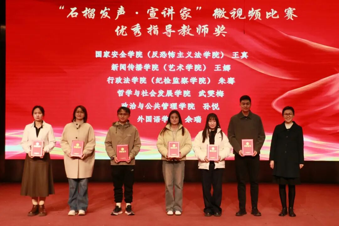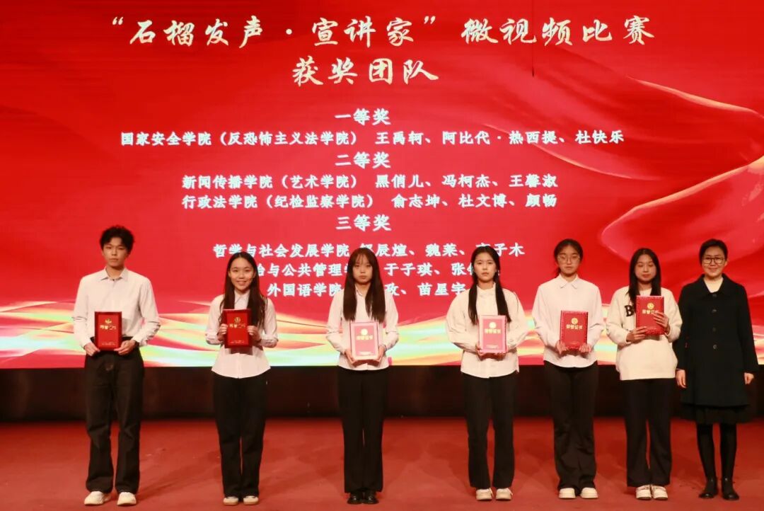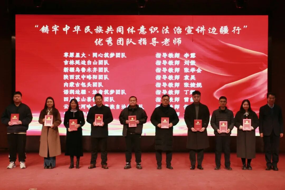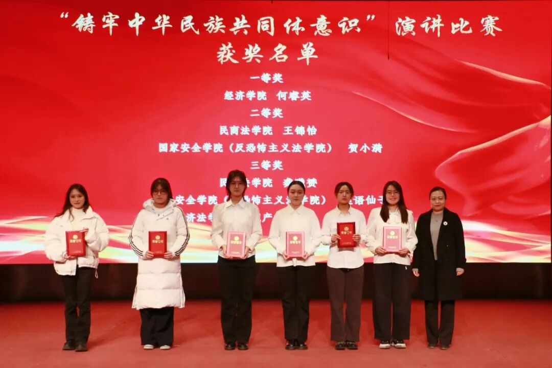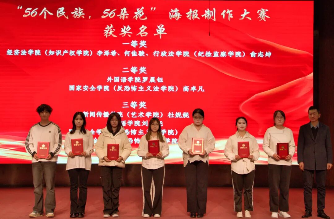 大会分别对“56个民族,56朵花”海报作品制作大赛、“中华风韵”手工作品制作大赛、第三届“石榴发声·宣讲家”微视频比赛、“铸牢中华民族共同体意识”演讲比赛,以及“铸牢中华民族共同体意识法治宣讲边疆行”社会实践活动优秀团队等获奖师生进行表彰,对皇冠体育投注 “弘志”奖学金进行了颁奖。
